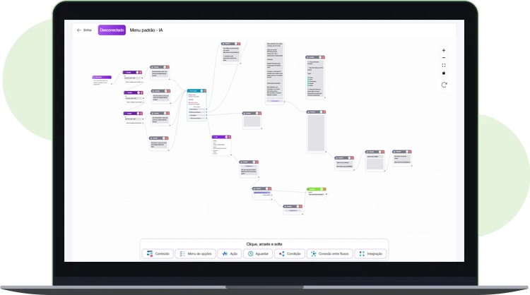 Agora você pode automatizar seu marketing, geração de lead, atendimento e muito mais com um robô. Em uma tarde você constrói o seu utilizando o nosso construtor arrasta e solta.